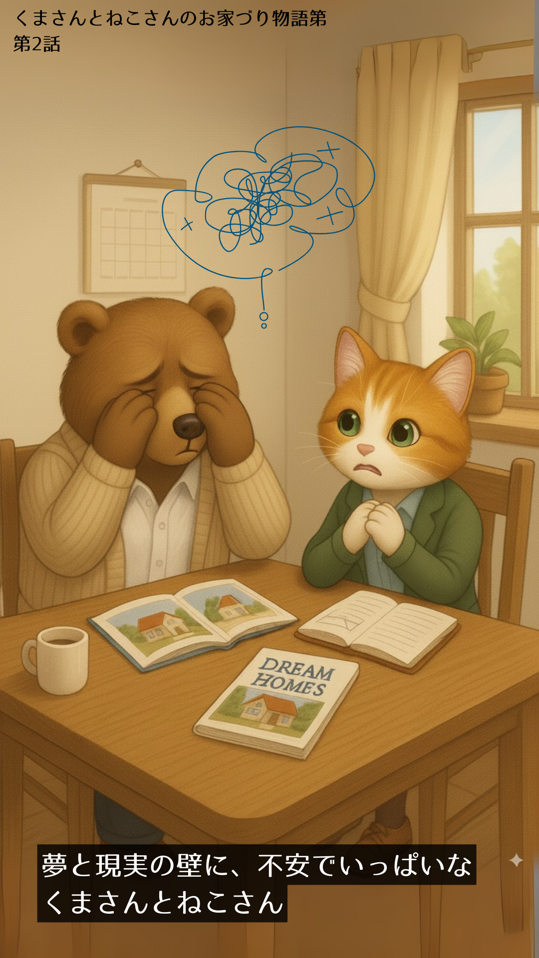 家づくりの夢と現実の壁にぶつかり、不安でいっぱいだったくまさんとねこさん。