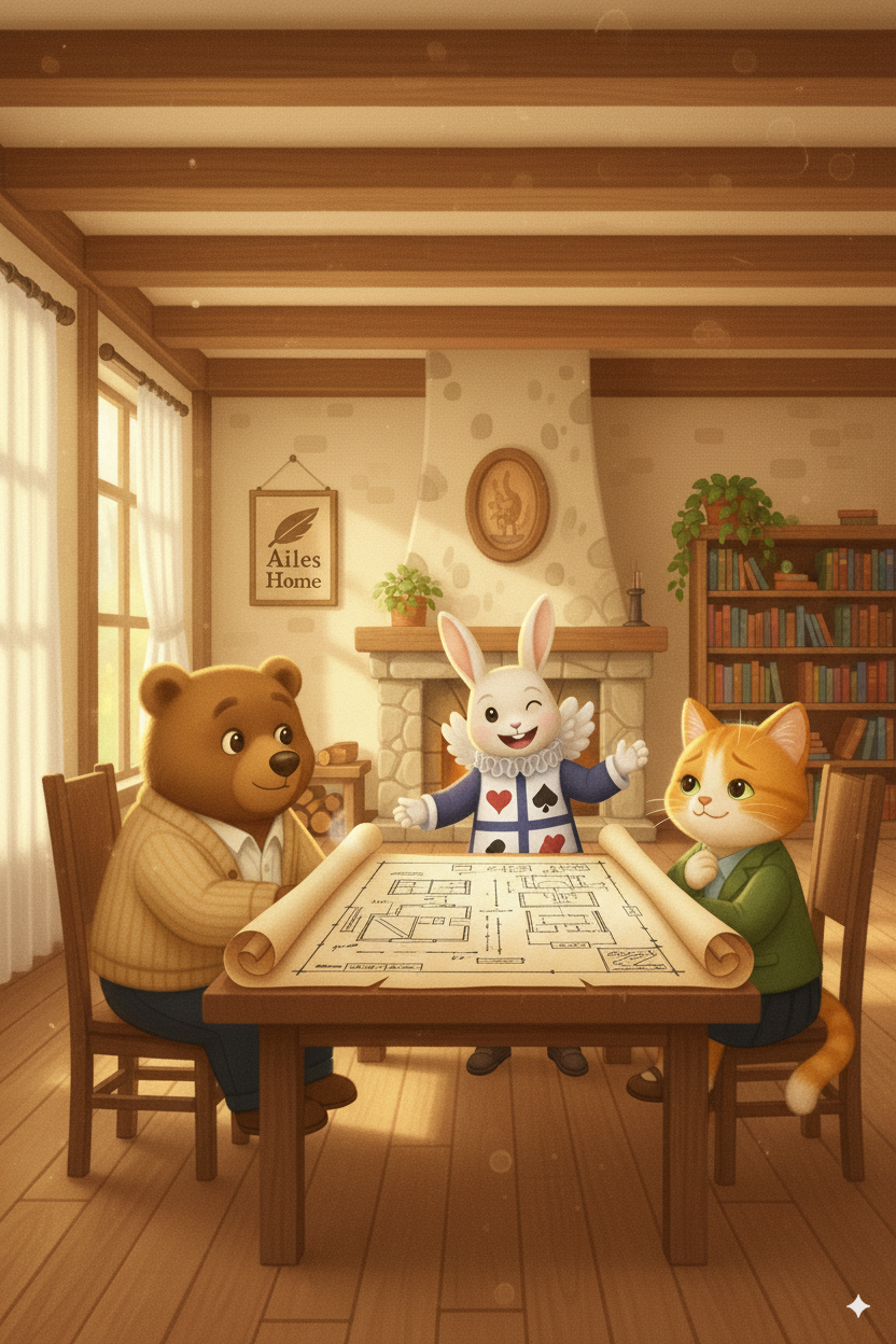 不安を抱えてエールホームを訪れた、くまさんとねこさん。 そこでうさぎさんが広げたのは、二人の希望がぎゅっと詰まった、たった一つのプランでした。