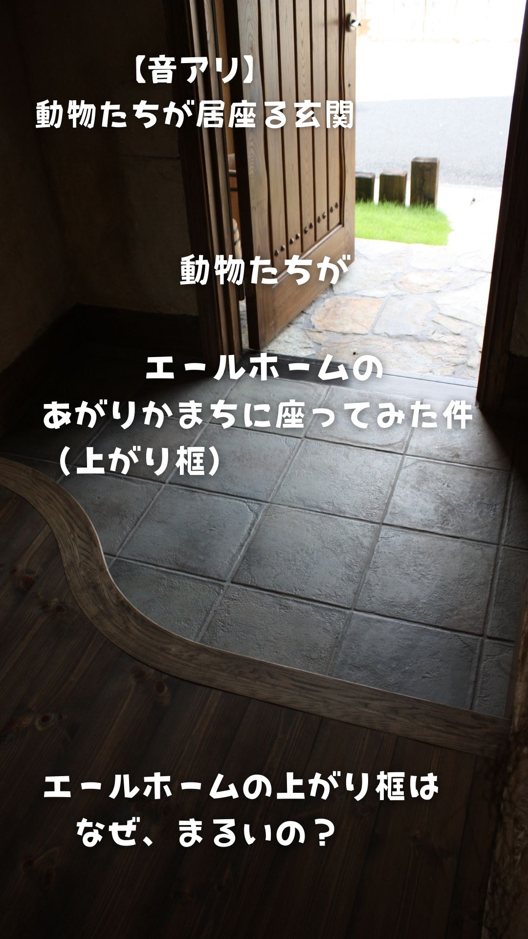 今回は、そんな玄関の主役「上がり框」に、どこからともなく動物たちが集まってきてしまったようです(笑) ぜひ【音をオン】にして、動物たちのシュールな会話と共にお楽しみください。